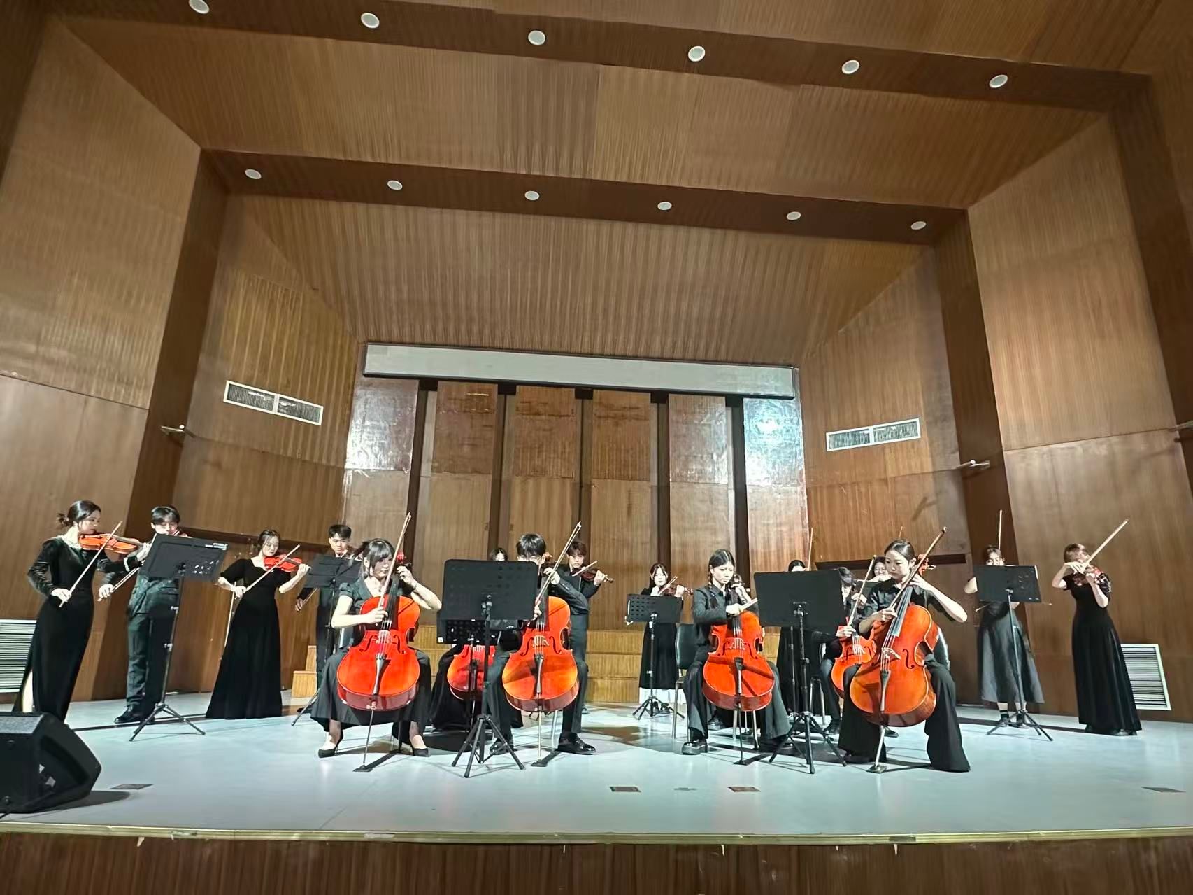 本次系列音乐会精心策划、分类呈现,既设置了综合音乐会专场,囊括管弦乐合奏与重奏、民乐合奏与重奏、室内乐舞台训练、合唱与重唱、声乐舞台表演训练、形体训练与舞蹈编导基础等多门实践课程的教学成果,集中展现了不同专业方向学生的综合艺术能力;又开设了钢琴重奏、钢琴正谱伴奏、钢琴即兴伴奏等专项音乐会,聚焦单一课程的深度实践成果,让学生在专项领域充分展现专业功底与创作活力。