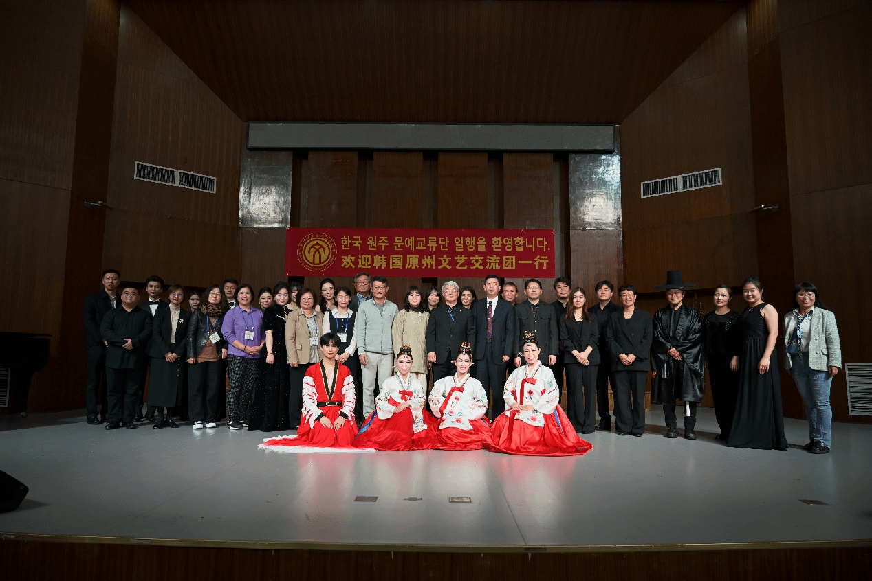 2025年11月9日下午4点,由合肥市文联、合肥师范学院音乐学院与韩国原州市艺总联合主办,合肥市音乐家协会、合肥市舞蹈家协会、合肥师范学院音乐学院艺术实践中心、器乐系、声乐系、钢琴系共同承办的中韩文艺交流演出在合肥师范学院音乐学院精彩上演。韩国原州艺总音乐代表团一行21人受邀参演,与合肥师范学院音乐学院的师生们同台献艺,以音乐为媒,共叙中韩友谊,展现艺术魅力。